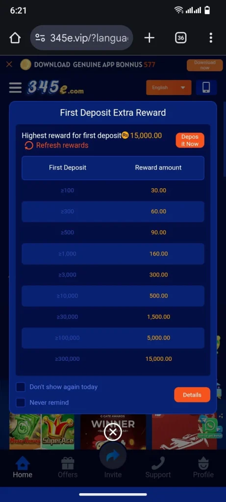 345e Game rewards players who invite friends to join. Every successful referral earns you a cash bonus or credits, which you can use to play more games or withdraw.